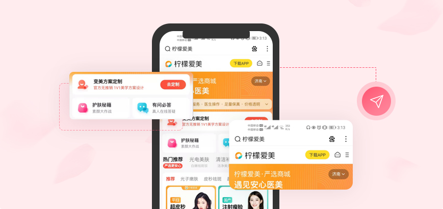 柠檬爱美平台"百度新医疗",包含内容、评价和电商点的一站式医美服务平台,流量群体更加精准,用户意图更强